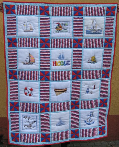dodała ramki z wiatraczkami i powstała wspaniała morka kołderka.