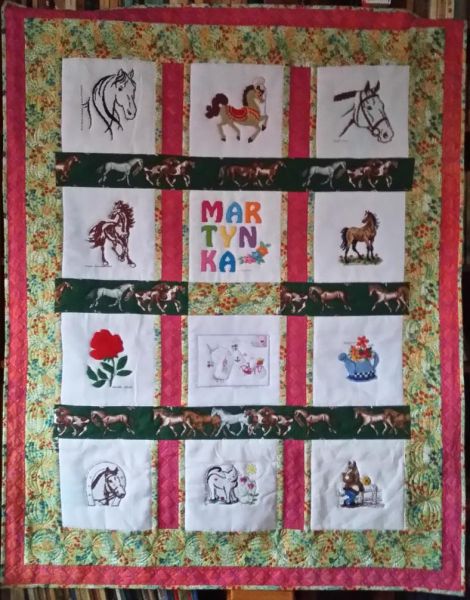 Martynk bardzo lubi konie i zagościły one na kołderce.