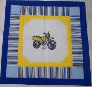 Damian otrzymał poduszkę wykonaną przez Nusię ze Śremu