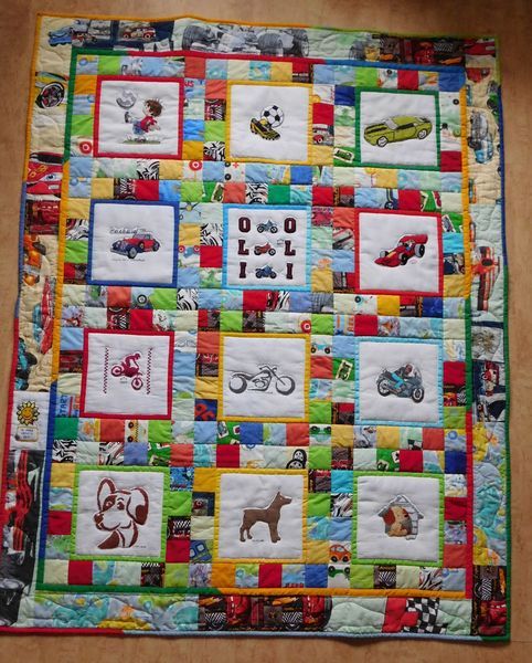 Kołderkowe Ciocie wyhaftowały a Renia uszyła badzo kolorowy patchwork.
