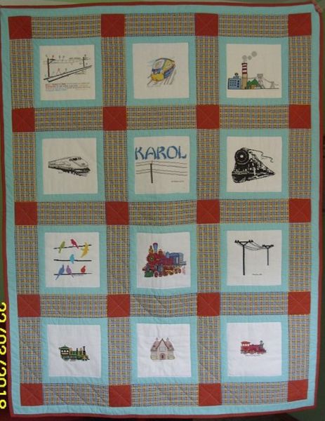 pociągi i trakcja. Cioteczki sprostały wyzwaniu i whaftowały kwadraciki o tej