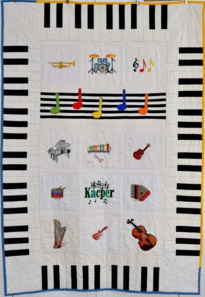 uszyła wspaniały muzyczny patchwork. Kołderka wygląda jak wspaniały fortepian.
