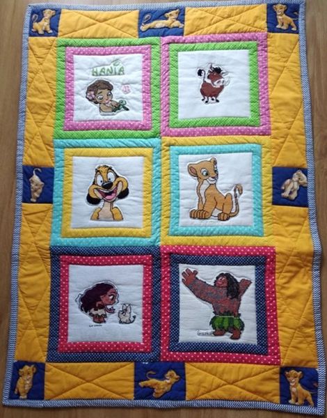 bardzo lubi bajkę "Król Lew" i postacie z niej znalazły się na kołderce.