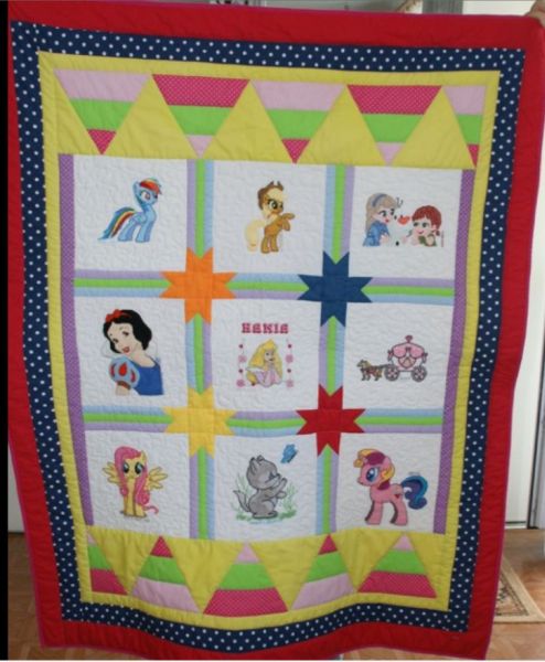 Na kołderce znalazły się postacie z bajek, które lubi dziewczynka.