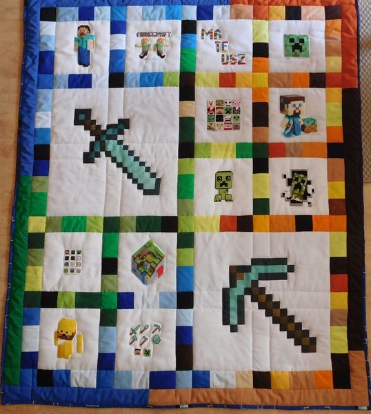 Pasją Mateusza jest Maincraft i Cioteczki wyhaftowały wzory z tej gry.