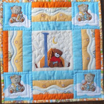 Kołderkowe Cioteczki przerobiły obrazki na wzorki i wyhaftowały kwadraty.