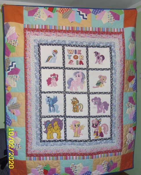 Dziewczynka bardzo lubi kucyki Pony i to one właśnie zagościły na kołderce.