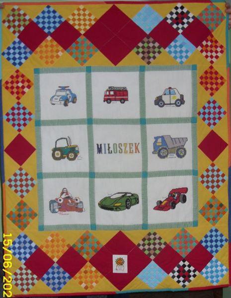 Miłoszek bardzo lubi samochody i właśnie one znalazły się na kołderce.