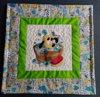 Poduszkę dla Kacpra uszyła Modelina z haftem Danki z Grudziądza