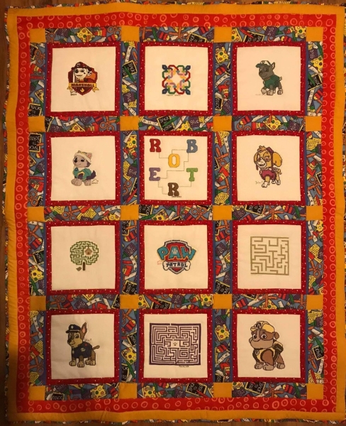 Bożenka z Lublina uszyła kolorową kołderkę dla Roberta.