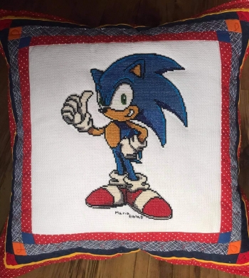 Poduszkę dla brata uszyła Kasia z Bugaju z haftem Marii z Elbląga