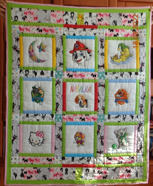 Grazka z Choszczna uszyła kolorową kołderkę dla Natalki.
