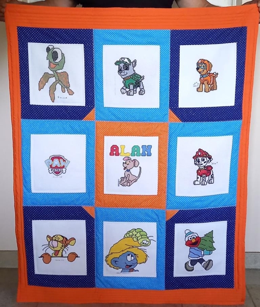 Na kołderkę wybrałyśmy kwadraty z postaciami z różnych bajek.