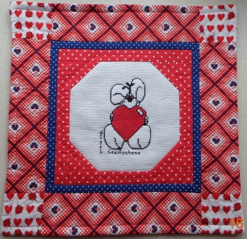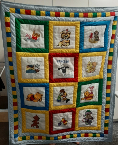 Eryczek bardzo lubi misie dlatego Kołderkowe Cioteczki wybrały takie kwadraty.