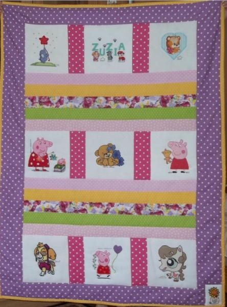 Dziewczynka lubi bohaterów Psiego Patrolu i Świnkę Peppę i właśnie te postacie zagościły na kołderce.