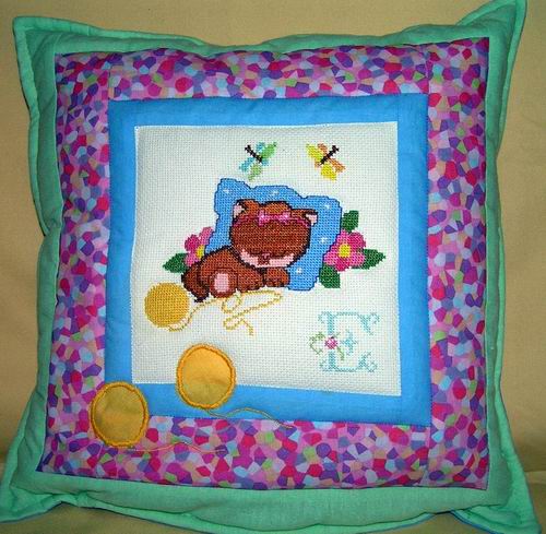 poduszeczkę uszytą przez Anie z Warszawy z kwadracika wyszytego