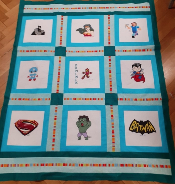 Chłopiec bardzo lubi Superbohaterów, więc Ciocie pięknie oprawiły hafty.