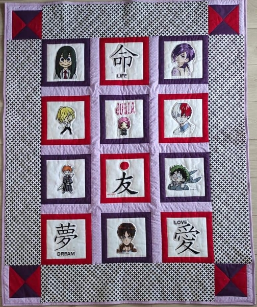 Japonii, a w szczególności mangami. Z tego powodu kołderkowe Ciocie wyhaftowały adekwatne wzory.