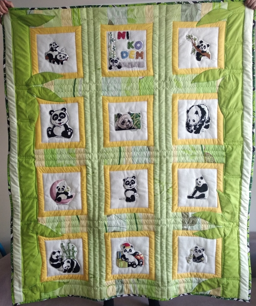 fantastycznie je oprawiła. Na kołderce znalazły się patchworkowe bambusy. Powstała wspaniała