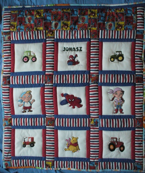 Dodała do tego jeszcze biało-niebiesko-czerwone paski i powstała prawdziwie "męska" kołderka.