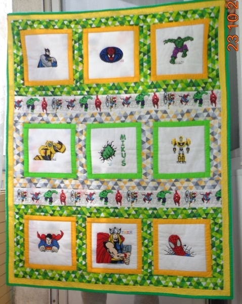 Grazka z Choszczna uszyła zieloną kołderkę dla Mikołaja.