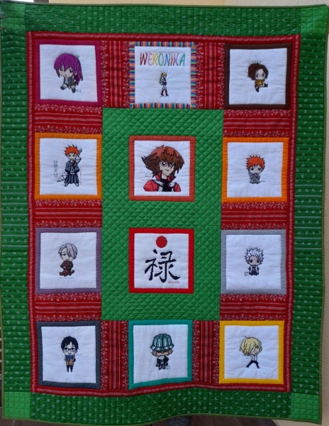 Weronika jest miłośniczką japońskich mang, więc kołderkowe Ciocie wyhaftowały odpowiednie kwadraty.