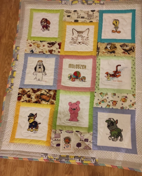 Bajarka uszyła kołderkę dla Miłoszka.