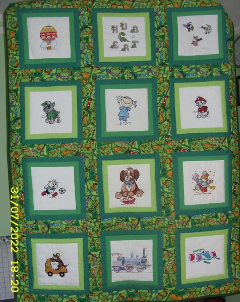 Piękną, zieloną kołderkę dla Huberta uszyła