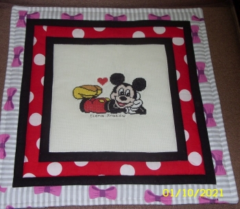 Poduszkę dla Lenki z haftem Danki z Grudziądza uszyła Nusia ze Śremu