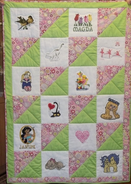 W ten sposób powstała bardzo dziewczęca kołderka dla Magdy.