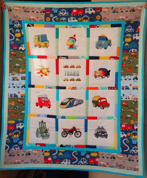 Grażka z Choszczna uszyła dla Frania bardzo zmotoryzowaną kołderkę.