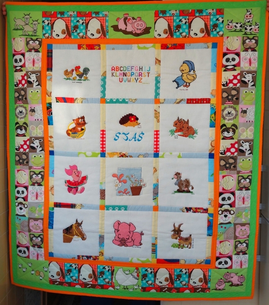 Chłopiec uwielbia zwierzątka, więc takie kwadraciki znalazły się na kołderce.