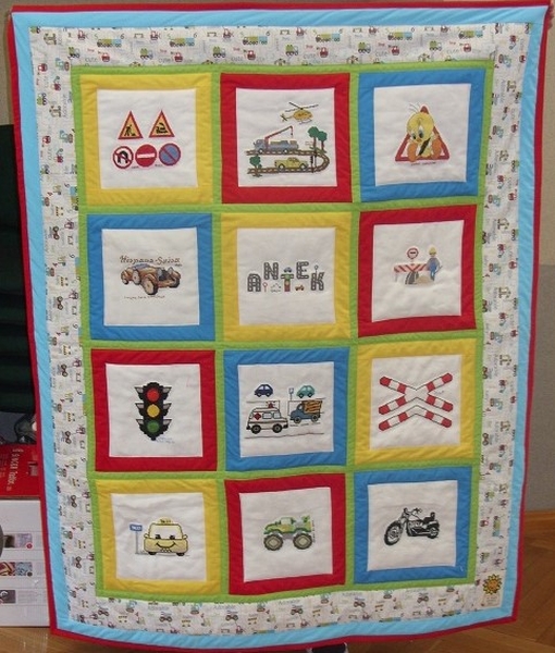 Ciocie wyhaftowały piękne, tematycznie powiązane kwadraciki, a Karolina z Konstancina stworzyła kolorową kołderkę.