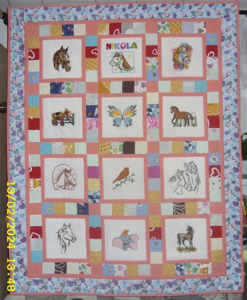 Piękne konie wyhaftowane przez kołderkowe ciocie Nusia ze Śremu umieściła na kolorowej