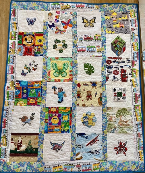 Dla Stasia ciocie wyhaftowały: minecraft, liście monstery, pokemony, motyle.