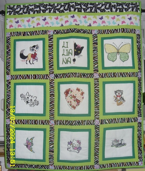 Dziewczynka uwielbia motyle i koty, więc one zostały umieszczone na kołderce.