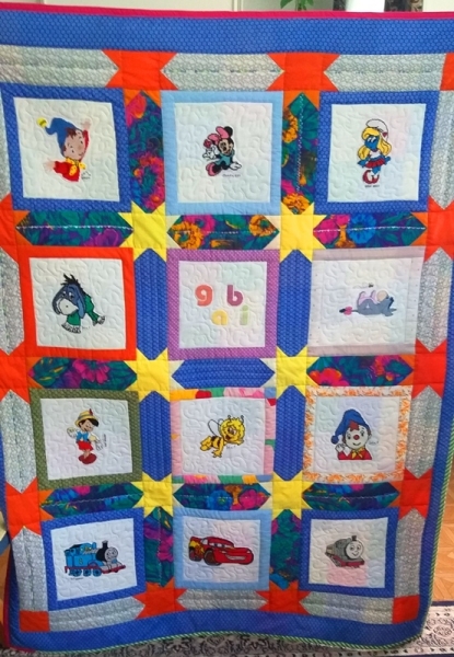 Odpowiednie kwadraciki zostały wyhaftowane, a Majola uszyła dla Gabrysi kołderkę.