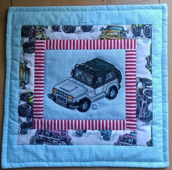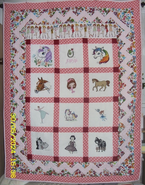 Dziewczynka jest wielką miłośniczką koni, więc i takie haftowane kwadraciki znalazły się na niej.