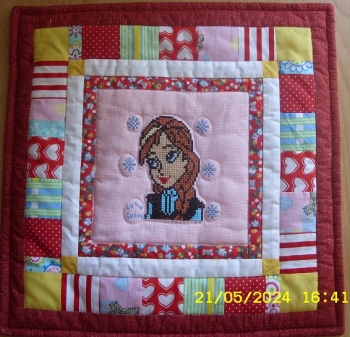 Nusia ze Śremu dzielnie pozszywała wyhaftowane kwadraciki i małe skrawki materiału.