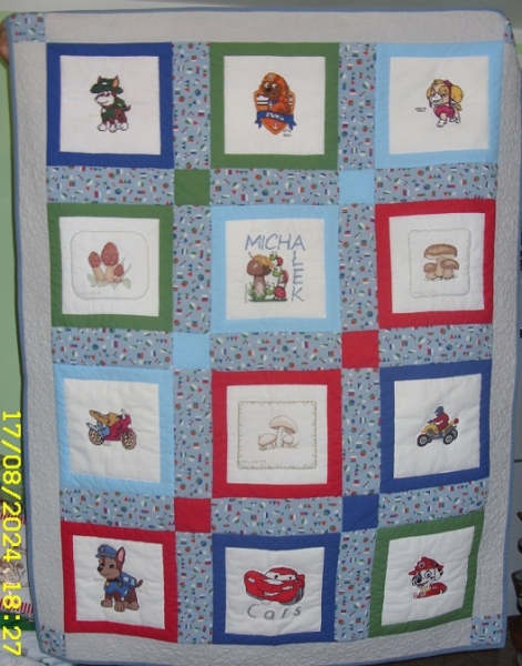 otrzymały kolorowe rameczki. W ten sposób powstała kołderka w sam raz dla młodego mężczyzny. Michałek bardzo się z niej ucieszył.