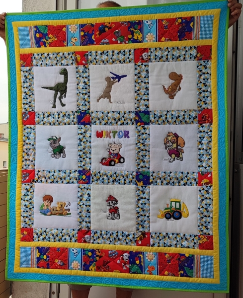 Grażka z Choszczna uszyła kołderkę z chłopięcymi motywami dla Wiktora.