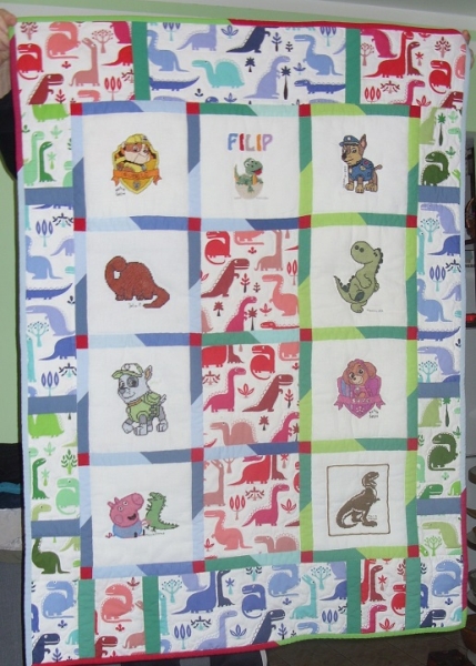 Nusia ze Śremu uszyła z nich kołderkę w kolorowe dinozaury.