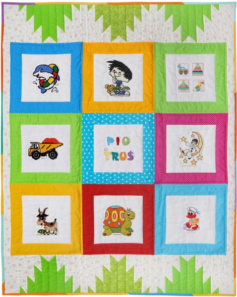 Dzielny Piotruś otrzymał kolorową kołderkę.