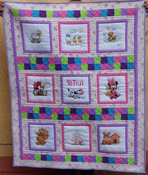 Kołderka jest bardzo kolorowa, sprawiła Ritce wiele radości i będzie towarzyszyć jej w trudach rehabilitacji.
