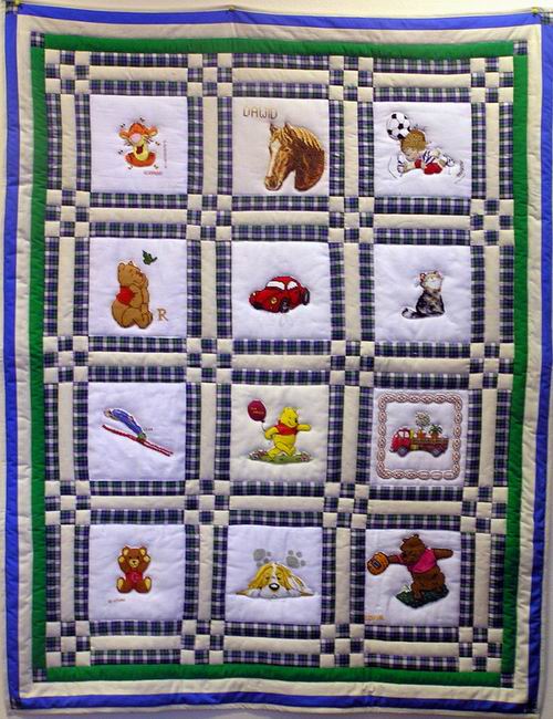 Na kołderce znalazły się kwadraciki wyszyte przez: