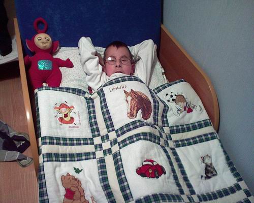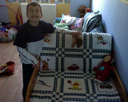 Kołderkę dla Dawida uszyła Eva z Anina. Dawodek, to już