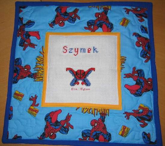 imieniem chłopca oraz kwadracik ze Spidermanem, ponieważ Szymek to