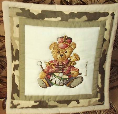 otrzymał również wojskową poduszkę uszytą przez Keetey, Sarenka i Ewę (Pierzastą)