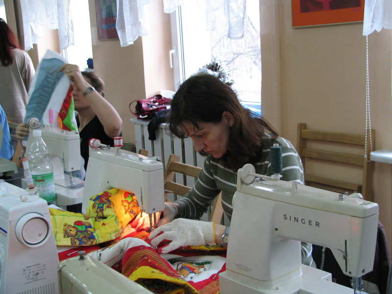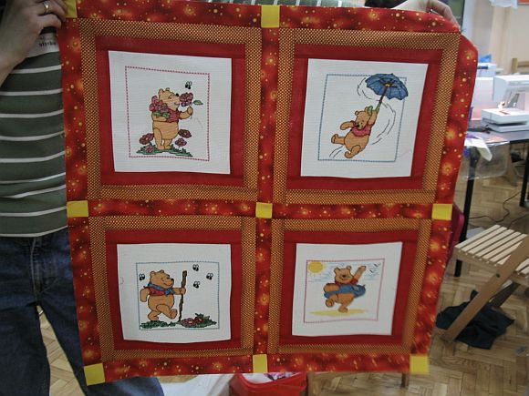 Kołdrka powstawała na kursie szycia kołderek, który odbył się w