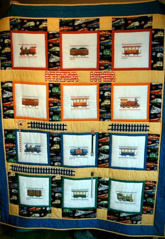 Na kołderce znalazły się kwadraciki wyszyte przez kanę i Karolinę z Konstancina.
